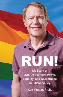 Run! tells the story of how LGBTQ+ people in San Jose/Silicon Valley progressed from being political outcasts to becoming a force that gained political power, equality, and acceptance. Having lived and breathed queer activism for almost 40 years, Ken Yeager is uniquely positioned to tell the story of how this happened. The strategies he used and the lessons he learned will serve as a guide for activists organizing to counter the current uptick of anti-gay and anti-trans hostilities in their communities. Run! also serves as a primer for LGBTQ+ people thinking of running for office. As the first openly gay elected official in Santa Clara County who served 26 years in public office, Ken Yeager details his numerous campaigns and provides a checklist for how to achieve electoral victory. Winning by itself isn’t enough. It’s what you do while in office that matters. Known as one of the most effective local elected officials, read how Ken Yeager crafted landmark legislation to improve the quality of life of LGBTQ+ people and all residents of Santa Clara Valley. After reading his book, you’ll be inspired to take him up on his call to Run, Baby, Run! for office.